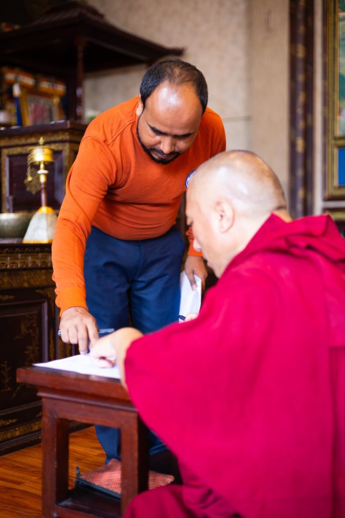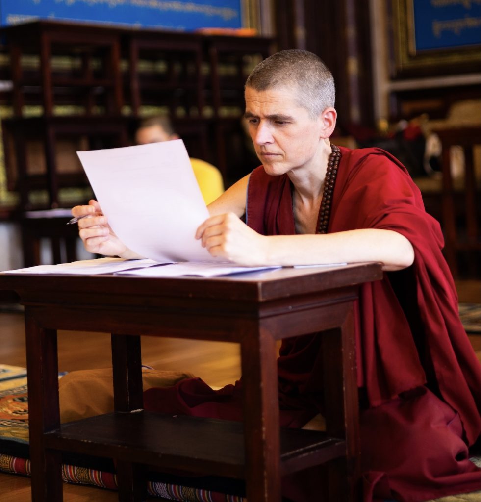 Following the mid-semester oral exams in August, the exam week started with two meditation exams, during which students were assessed on their ability to rest in calm-abiding meditation or their insights during contemplation. Certificate students meditated with a focal support, first-year BA students contemplated topics from the first two mahamudra preliminaries while second-year students contemplated the initial steps for developing the relative awakening mind.